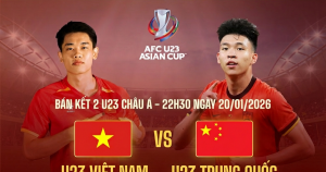 AFC U23 Asian Cup: Vietnam U23 – China U23 (22:30 – 20/01/2026)
